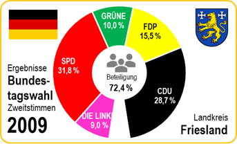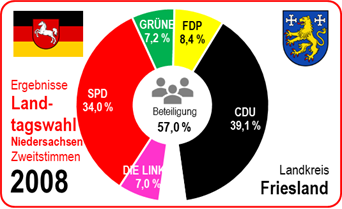 In der umfangreichen pdf-Broschüre "wahl lokal" sind die Endergebnisse aller Städte und Gemeinden im Landkreis Friesland aufgeführt (... und natürlich auch als Summe für den Landkreis).