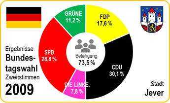 Jever ist wie alle Orte im Kreis Friesland dem Bundestagswahlkreis 26 zugeordnet (neue Nr.).