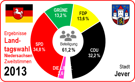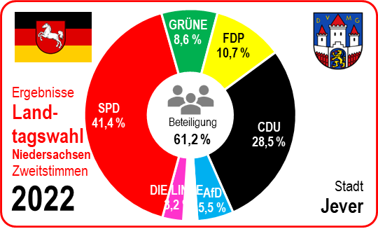 In der umfangreichen pdf-Broschüre "wahl lokal" sind die Ergebnisse für Erststimmen und für Zweitstimmen sowohl als Gesamtergebnis als auch umrechnet für alle Stadtteile von Jever genannt. Für eigene Beurteilungen der Wahlergebnisse sind diverse amtliche Statistiken zur Bevölkerungsstruktur vorhanden.