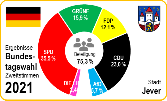 Jever ist wie alle Orte im Kreis Friesland dem Bundestagswahlkreis 27 zugeordnet.