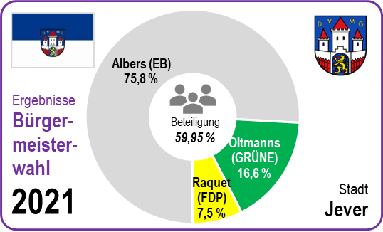 In der umfangreichen pdf-Broschüre "wahl lokal" sind die Ergebnisse für Erststimmen und für Zweitstimmen sowohl als Gesamtergebnis als auch umrechnet für alle Stadtteile von Jever genannt. Sofern erkennen die einzelnen wählbaren Personen, wie sie jeweils vor Ort Erfolg hatten.