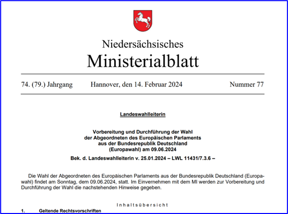 In nieders. Kommunalwahlen und Direktwahlen werden von der Landeswahlleitung lediglich zentrale Aufgaben wahrgenommen.