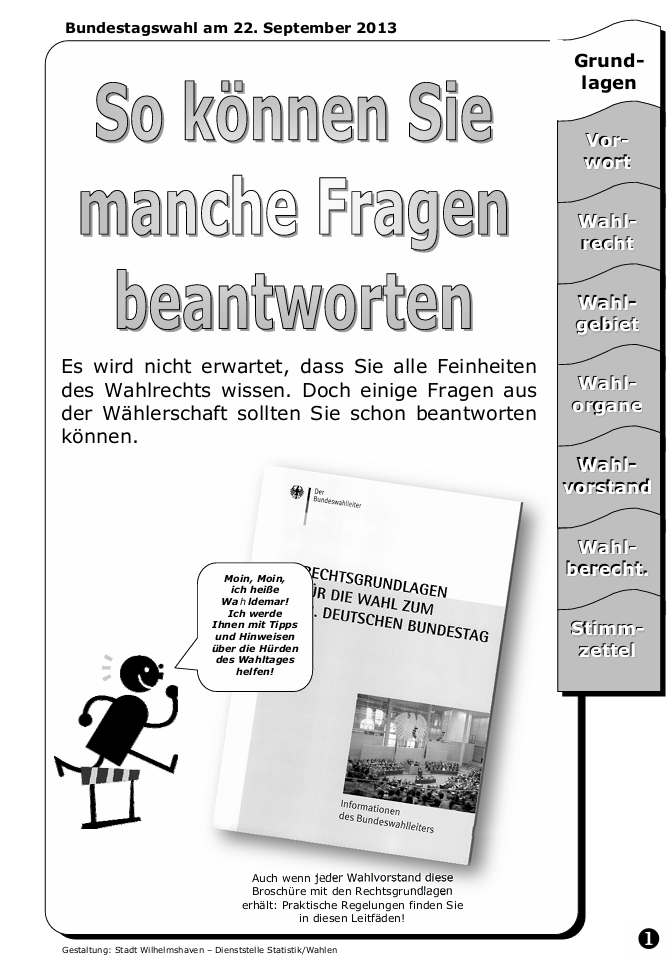 Die Stadt Wilhelmshaven entwickelte für das Wahlehrenamt ein Faltblatt mit allen Rechten und Pflichten (... klicken Sie für die Darstellung einer früheren pdf-Datei auf das vorherige Vorschaubild).